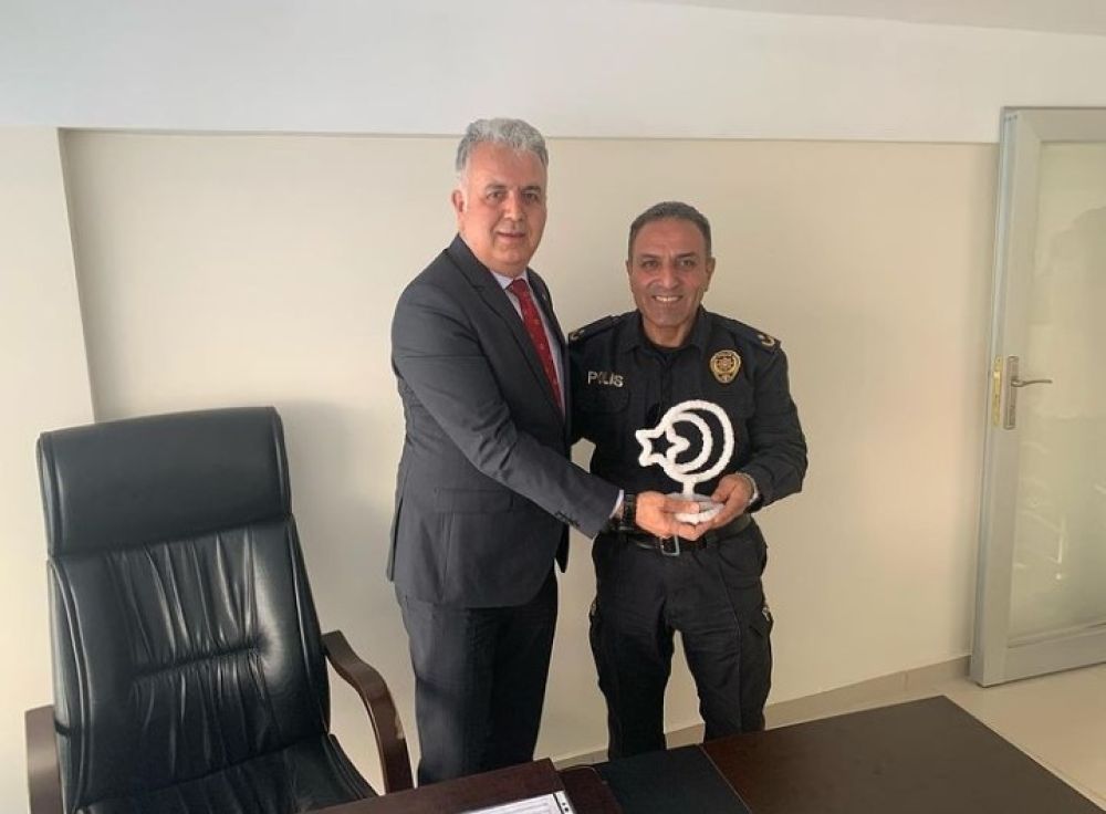 Şereflikoçhisar İlçe Emniyet Müdürü Arap Ağın odamızı ziyarette bulundu. Yönetim Kurulu Başkanımız Levent Koçak, odamız ve ilçe ekonomisi hakkında bilgi aktararak fikir alışverişi yaptılar. İlçe Emniyet Müdürü Arap Ağın’ın ziyareti sonrasında, Yönetim Kurulu Başkanımız Levent Koçak, tuzdan yapılmış Türk Bayrağı biblosunu hediye etti.